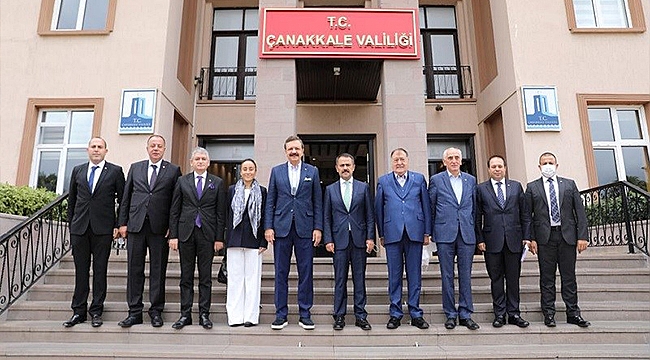 Trabzon Ticaret ve Sanayi Odası Meclis Başkanı Şadan Eren, Nevşehir Ticaret ve Sanayi Odası Başkanı Arif Parmaksız, Tekirdağ Ticaret ve Sanayi Odası Başkanı Cengiz Günay, Çanakkale Ticaret ve Sanayi Odası Başkanı Selçuk Semizoğlu, Ticaret Borsası Başkanı Kaya Üzen, Gelibolu Ticaret ve Sanayi Odası Başkanı Bülent Çetin, TOBB Çanakkale İl Kadın Girişimciler Kurulu İcra Komitesi Başkanı Birce Bilici Şimşek ve Genç Girişimciler Kurulu Başkan Yardımcısı Tevfik Başarır’ın da eşlik ettiği ziyarette Vali İlhami AKTAŞ, Türkiye Odalar ve Borsalar Birliği Başkanı Rifat Hisarcıklıoğlu ile bir süre görüşerek sohbet etti.