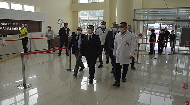 Mehmet Akif Ersoy Devlet Hastanesi incelemelerinin sonrasında Çanakkale Onsekiz Mart Sağlık Uygulama ve Araştırma Hastanesine geçen Vali İlhami AKTAŞ, ÇOMÜ Rektörü Prof. Dr. Sedat Murat ve Başhekim Prof. Dr. Okhan Akdur’dan Çanakkale’deki Koronavirüs ile mücadelede son durum ile kurumun çalışmaları ve işlevleri hakkında bilgi aldı.