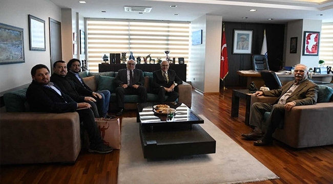 Türk Şehitlikleri İmar Vakfı Başkanı Doğan Ömer Özyiğit ve vakıf yetkilileri Belediye Başkanı Ülgür Gökhan'a nezaket ziyaretinde bulundu.