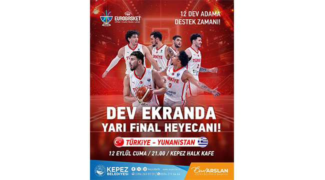 2025 Avrupa Basketbol Şampiyonası Yarı Final karşılaşmasında Türkiye A Milli Erkek Basketbol Takımı, 12 Eylül Cuma günü saat 21.00’de Yunanistan ile karşı karşıya geliyor. Bu büyük heyecan, Çanakkale ve Kepez’de dev ekranlarda basketbolseverlerle buluşuyor.