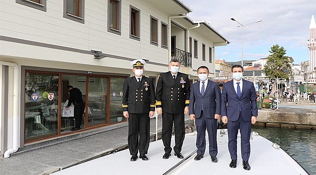 Ayvacık Kaymakamı İlker EKER’in de bulunduğu ziyarette Vali İlhami AKTAŞ, Sahil Güvenlik Ege Deniz Bölge Komutanı Tuğamiral Serkan TEZEL ve Küçükkuyu Sahil Güvenlik Karakol Komutanı SG. Kd. Yüzbaşı Ahmet YAKIN ile bir süre görüşerek sohbet etti.