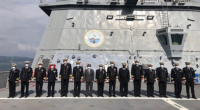 Vali İlhami AKTAŞ’ın TCG Bayraktar gemisi ziyaretine; Kuzey Deniz Saha Komutanı Tümamiral İbrahim Özdem KOÇER, Çanakkale Boğaz ve Garnizon Komutanı Tuğamiral Mustafa Turhan ECEVİT, Mayın Filosu Komutanı Tuğamiral Levent Refik TEZCAN, 1’inci Arama Tarama Filotillası Komodoru Dz. Kur. Alb. Cem HASANOĞLU, 2’nci Amfibi Gemiler Filotillası Komodoru Dz. Alb. Birol TÜTÜNCÜ, SNMCMG-2 Komodoru Alb. Javier Nunez De PRADO ve SNMCMG-2 Kurmay Başkanı Bnb. Alesso Di STEFANO ve askeri erkan da eşlik etti.