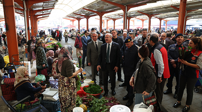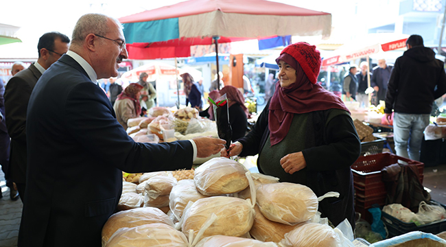 Pazar tezgâhlarını dolaşan Vali Toraman, esnafa hayırlı ve bereketli kazançlar diledi.