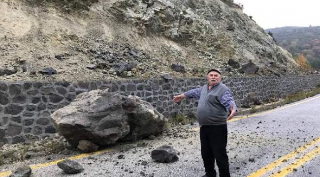 Gün boyu süren yağış nedeniyle Çan- Çanakkale yoluna dev kaya parçaları düştü.
